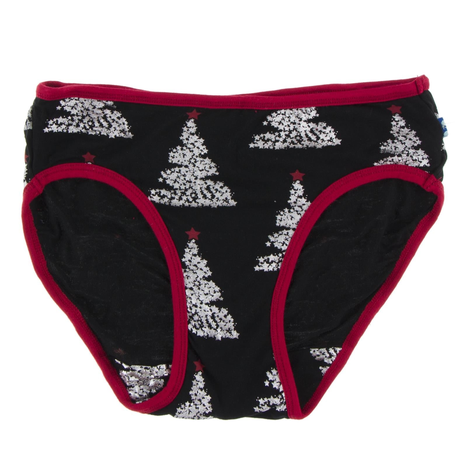 Print Underwear in Midnight Foil Tree with Crimson Trim