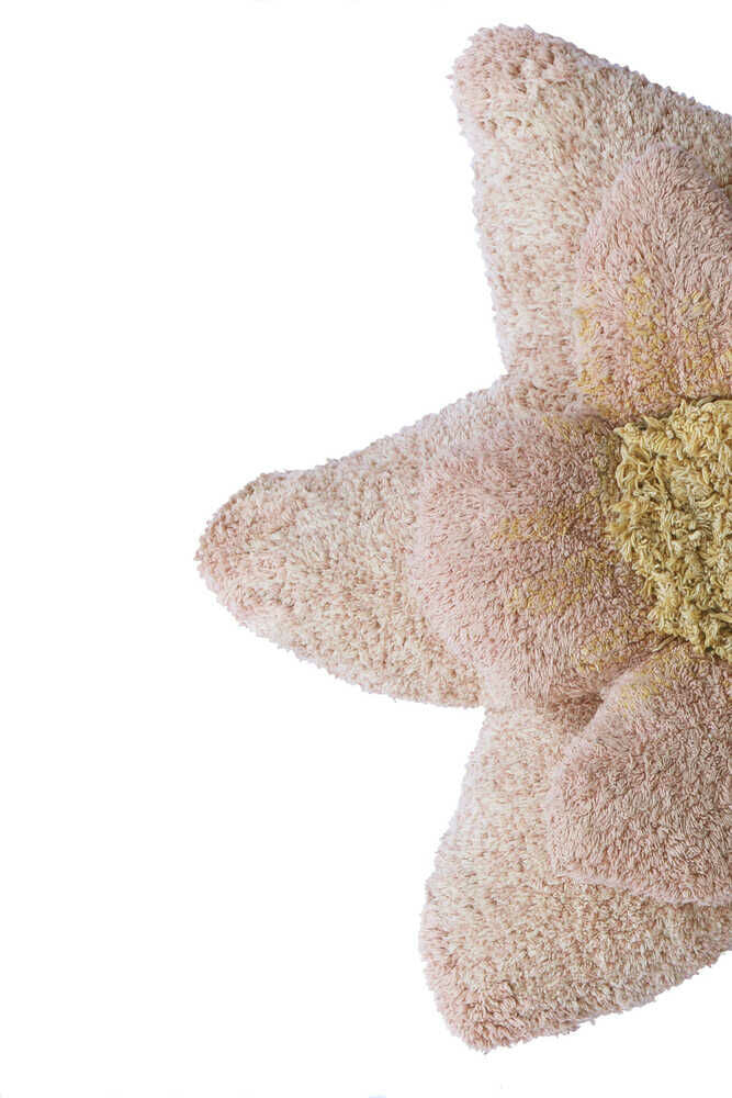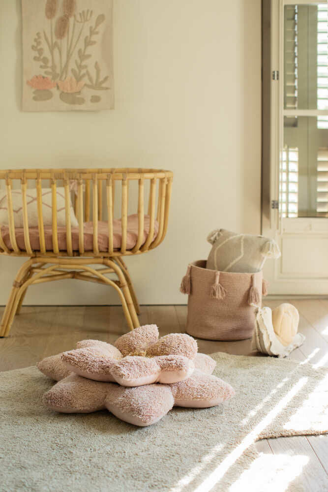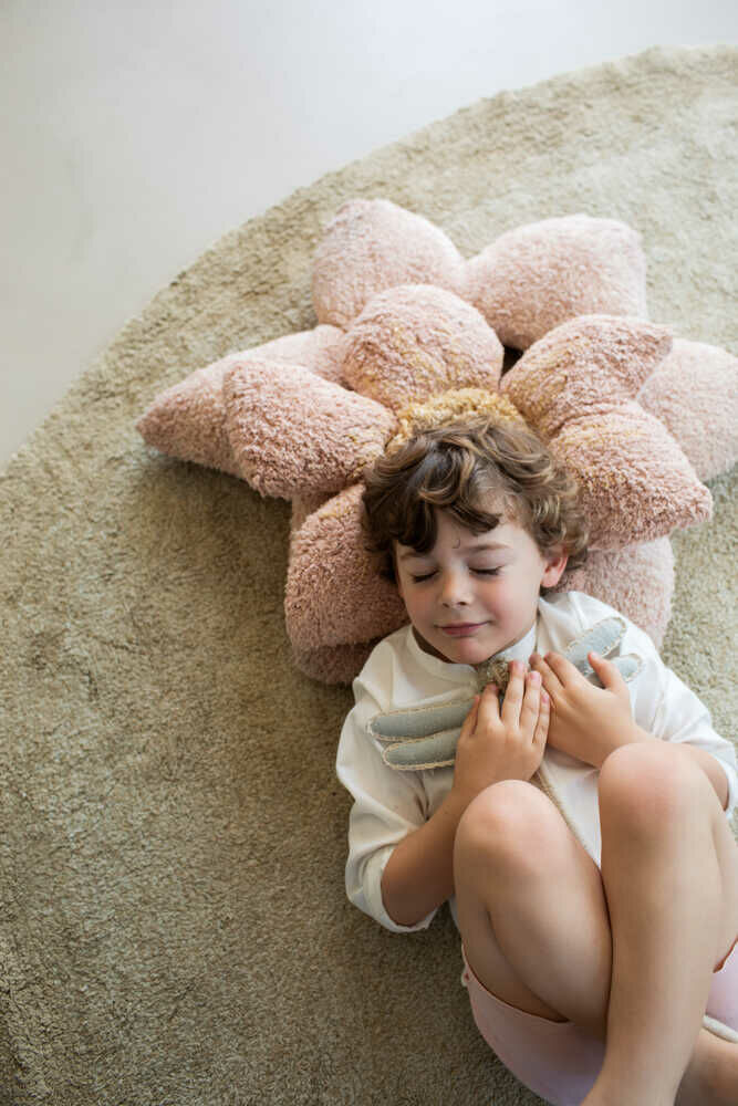 A rug and a throw pillow—2-in-1! And a new addition to our popular Puffy collection. This water lily-shaped rug is fresh out of the pond, complete with a detachable flower-shaped throw pillow. Ideal for a fantasy nursery decor or a kids’ playroom. Little ones will have fun imagining the magical wildlife surrounding a pond while they read, rest, or play on this rug.