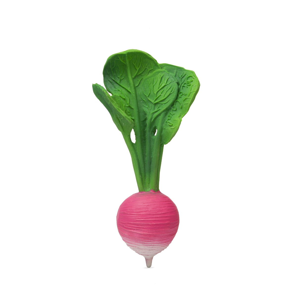RAMONA THE RADISH is a vegetable-shaped baby toy perfect for teething, sensory play, and bath time - all the while introducing them to a healthy lifestyle at an early age! Safe for kids, worry-free play!