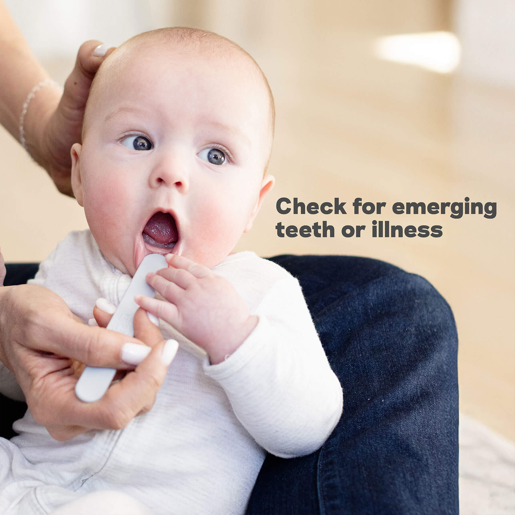 The Sensory Tongue Depressor helps parents (and medical professionals) to examine children's mouths. With the tongue depressor parents can check for emerging teeth, leftover food in the mouth, or illness.