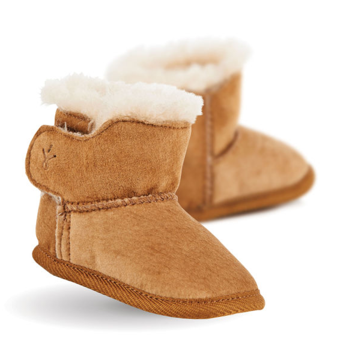 These baby booties are lined with natural Australian Merino wool to keep feet warm and comfortable no matter the season.