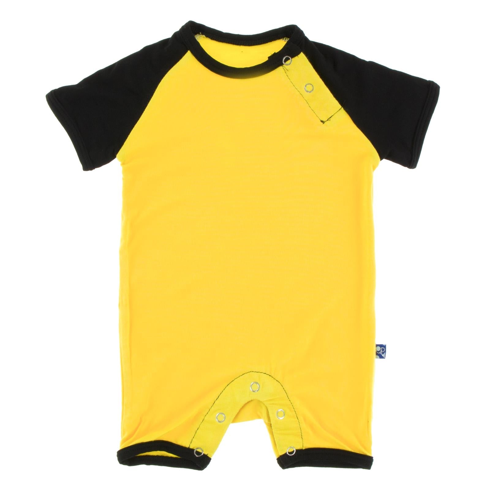 Short Sleeve Raglan Romper in Lemon with Midnight