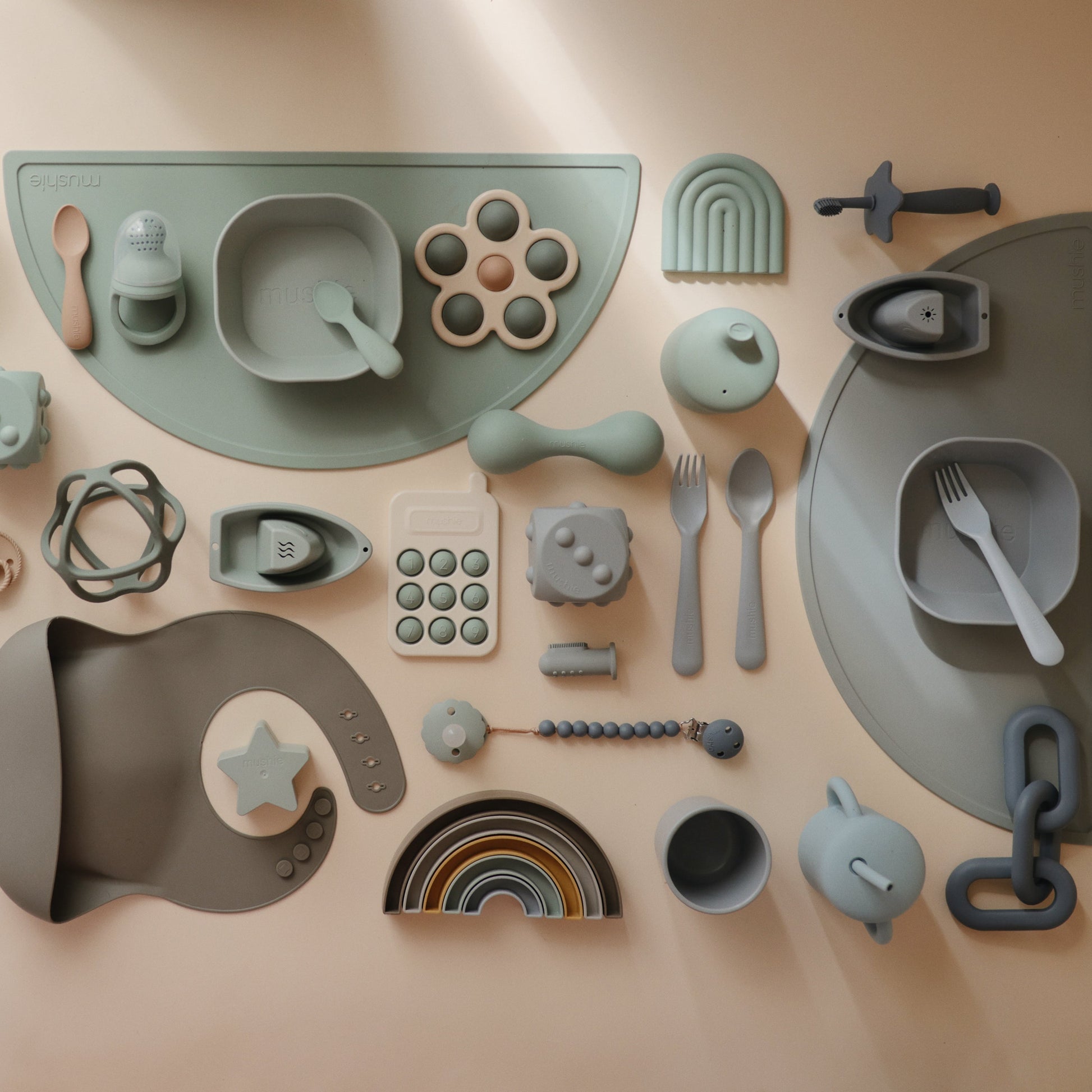Mushie toddler starter spoons are the perfect companion for your little one's journey into independent feeding. Made from non-toxic, food-grade silicone, these spoons are gentle on sore, sensitive gums and emerging teeth. The small, easy-to-grip handle is designed for little hands and promotes coordination and confidence as children learn to feed themselves.