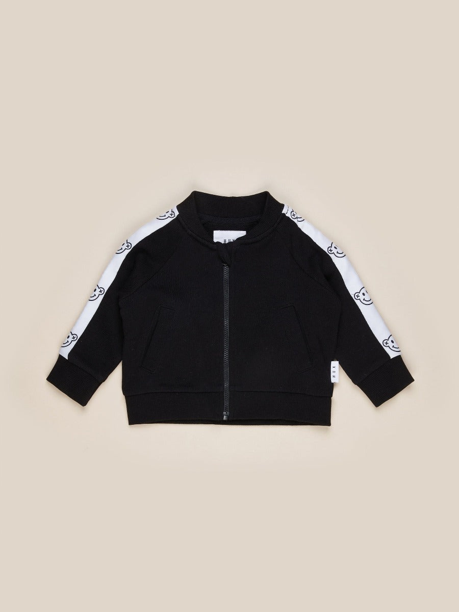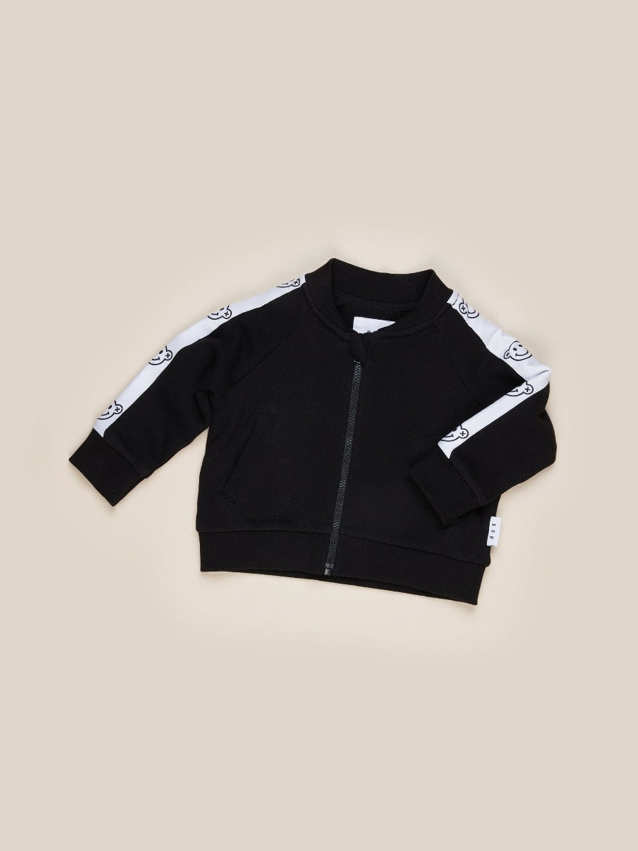 With a super fun smiley contrasting side-stripe design, this track jacket is versatile and comfortable for all year round.