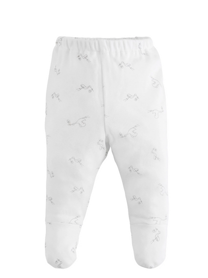 Neutral unisex organic cotton footed baby pant in our take me home stork print, great for layering and an essential for every newborn and baby. These organic baby pants offer lasting comfort.