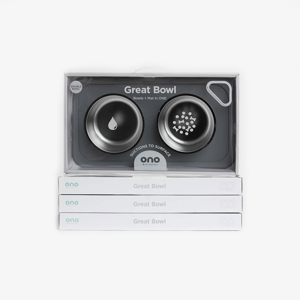 Ono is the pet-friendly sister company to ezpz! The Great Bowl (Double) is a game changer for those messy BIG noshers we call our pets. It is an all-in-one mat with bowls that captures your pet’s mess. The mat grips to any flat surface, making it difficult for paws (and toddler hands) to tip over. All Ono mats come with the mat PLUS two removable stainless steel bowls for easy refills and cleaning.