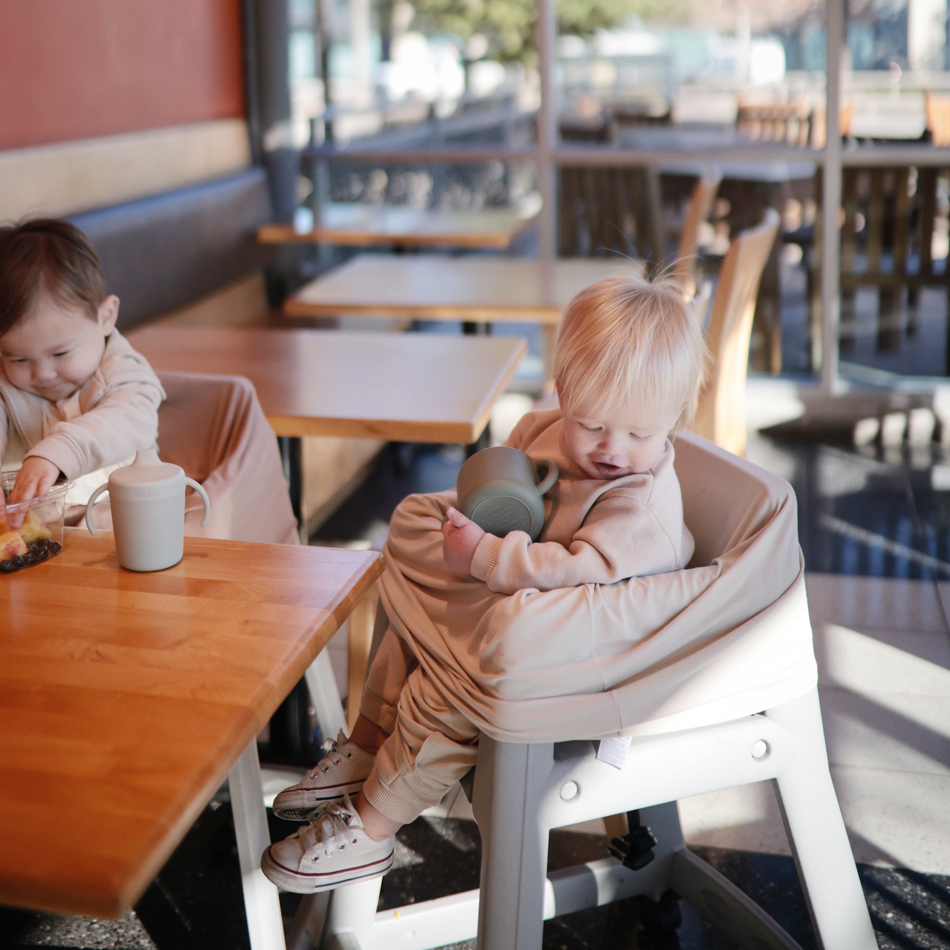 Keep your little one hydrated on-the-go with the Mushie Trainer Sippy Cup. Carefully crafted in Denmark from durable, non-toxic plastic, these cups are easy to clean and dishwasher safe. Easy-grip handles make it simple for little hands to self-serve when thirsty, while the removable lid makes refilling easy and mess-free.