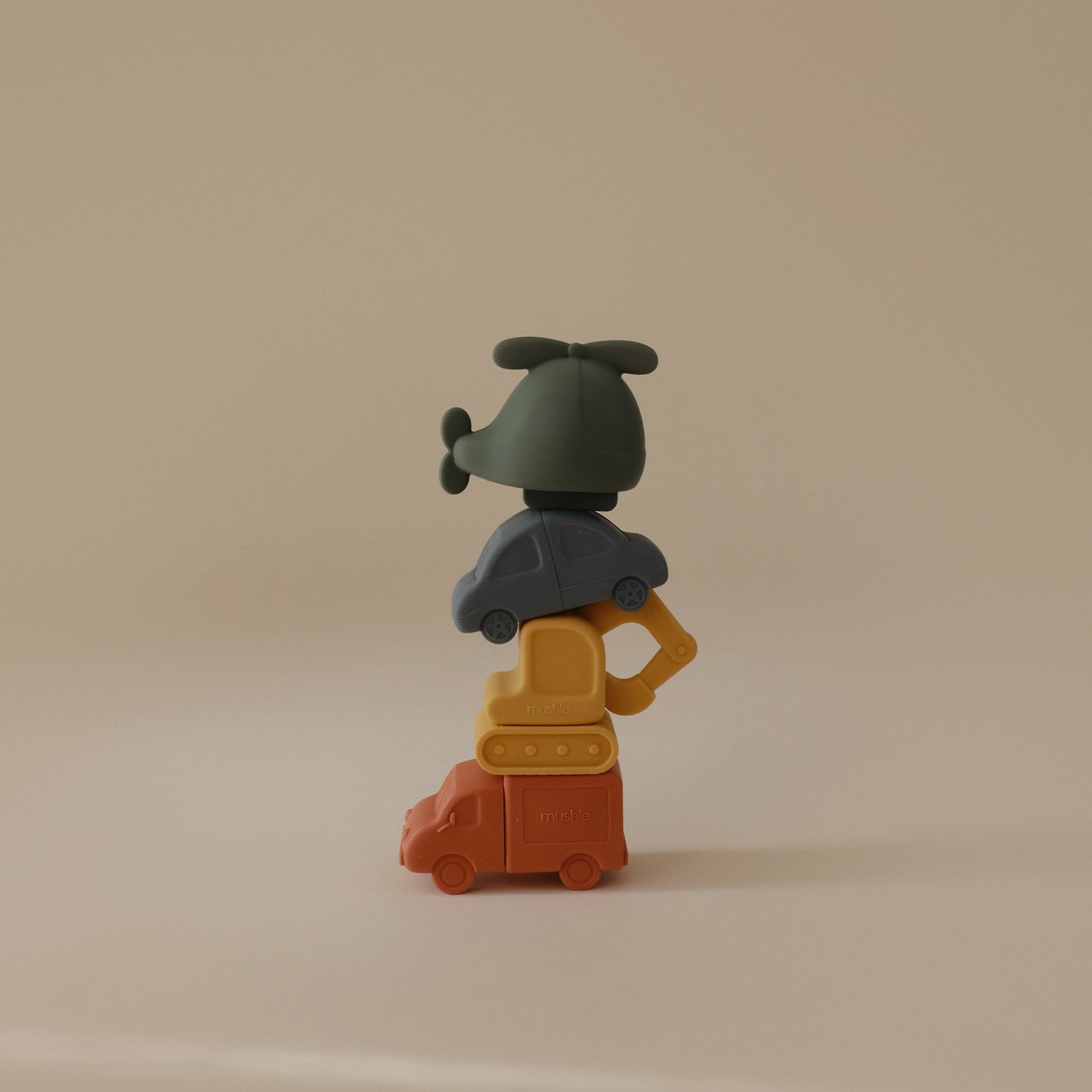 Let your child's imagination travel far and wide with the vehicles bath play set that includes a helicopter, car, truck and excavator. Made from 100% food grade silicone, the soft material is easy for little hands to hold while wet or dry. Its inventive design allows each toy to open into two separate pieces for thorough cleaning and fast drying. This feature allows the toys to remain mold-free with its easy-to-clean pieces that are dishwasher safe. After each use, we recommend opening the pieces to rinse out and air dry before storing.
