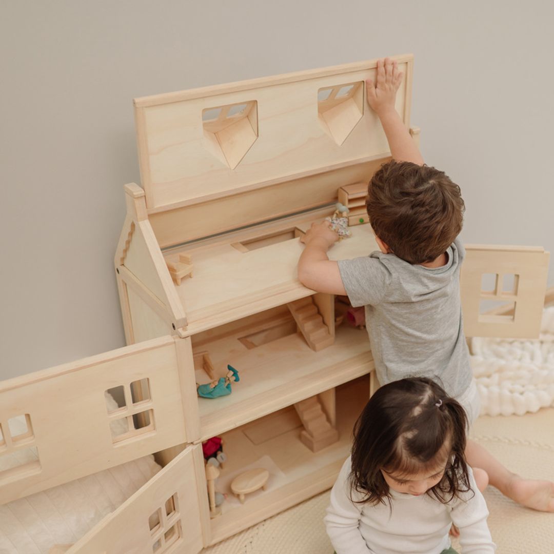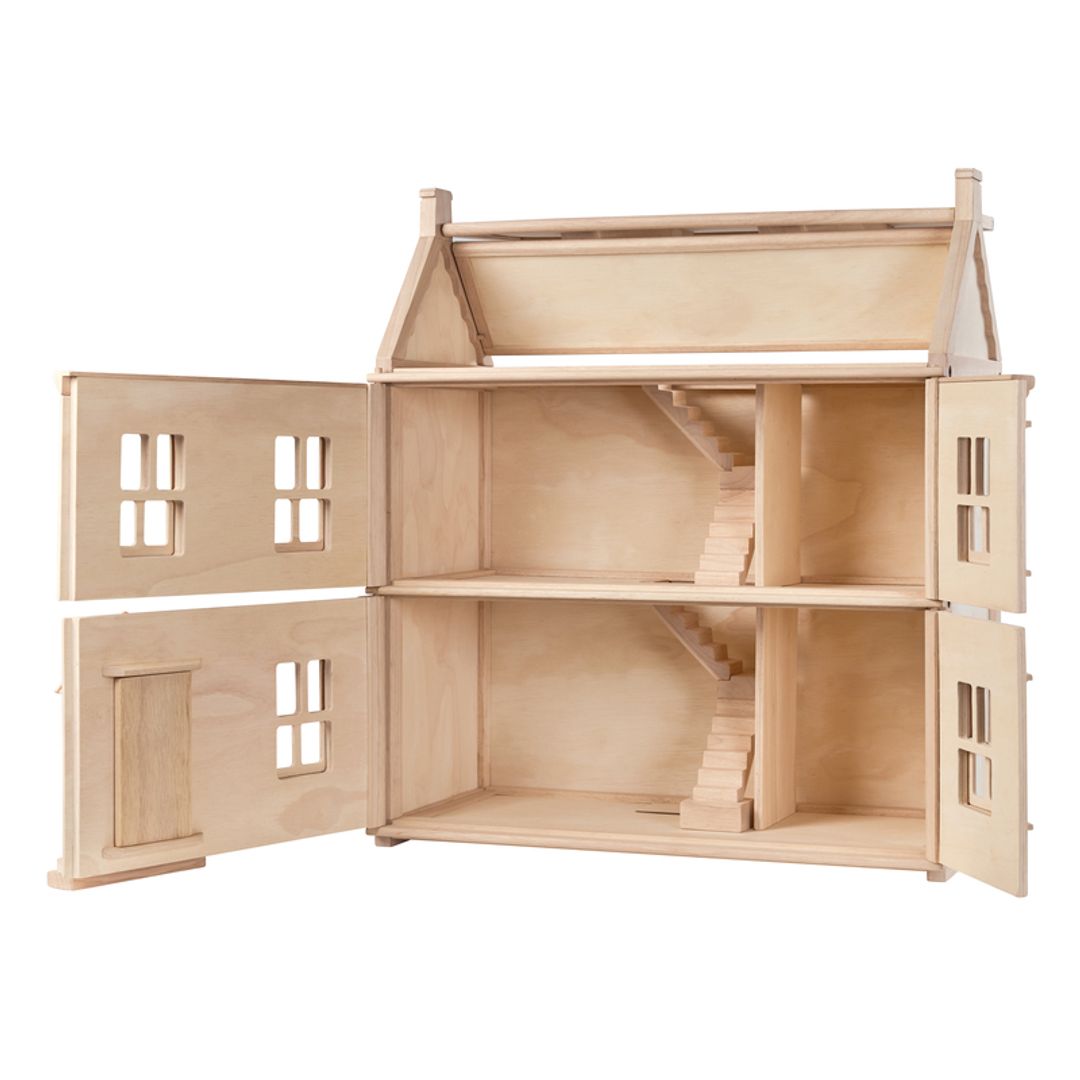 - The most popular PlanToys dollhouse available with 3 floors (including an attic), opening panels and functional sashes that slide open and shut
