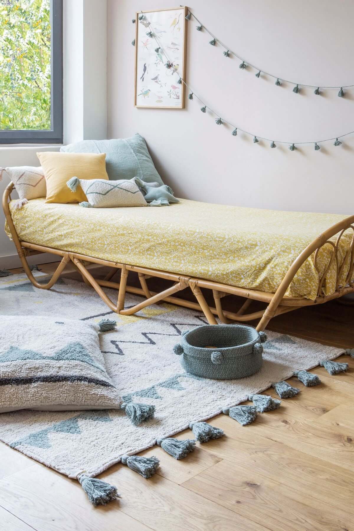 Our most versatile basket for multi-purpose storage with a pompom theme and dusty shades to blend into any decor. Use it for storing all kinds of things, from magazines to toys, toiletries, small objects, or even for food as a fruit bowl or breadbasket.