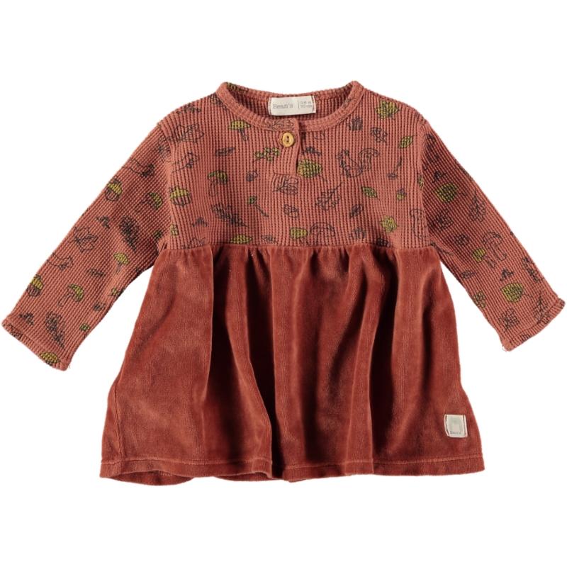 This Waffle Knit dress is fit for a casual, modern lifestyle. The fabric is ultra-soft waffle knit and velvet made from 100% organic cotton.