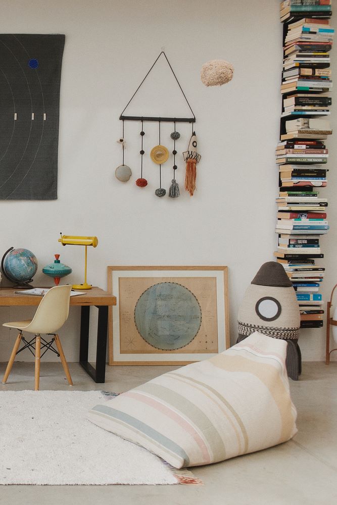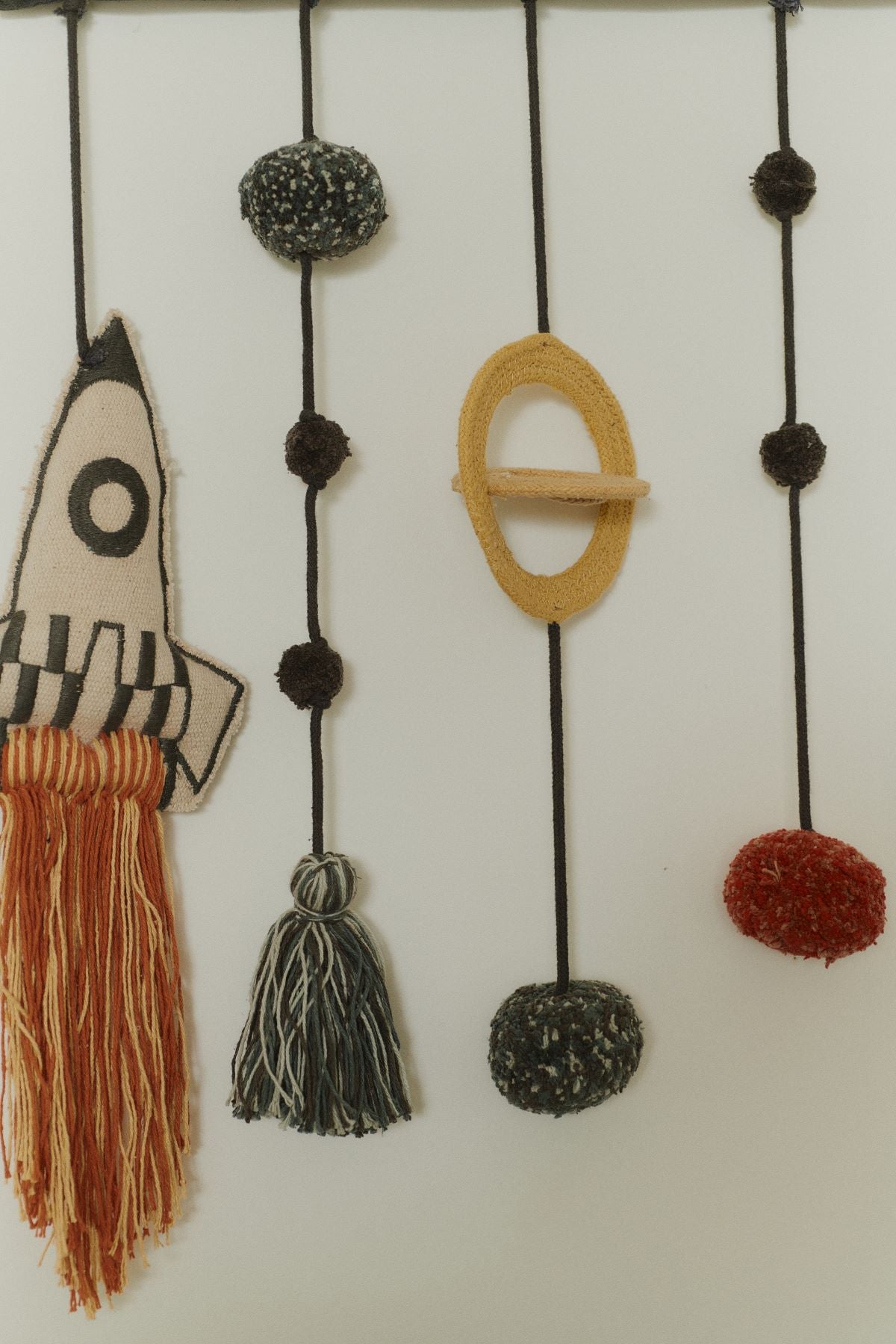 Introduce a cosmic adventure into any room with the Wall Hanger Cosmos. This handcrafted wall decoration features a charming astronaut made of cord, playful orbits crafted from cotton cords, textile planets with long fringes, and colorful details throughout.