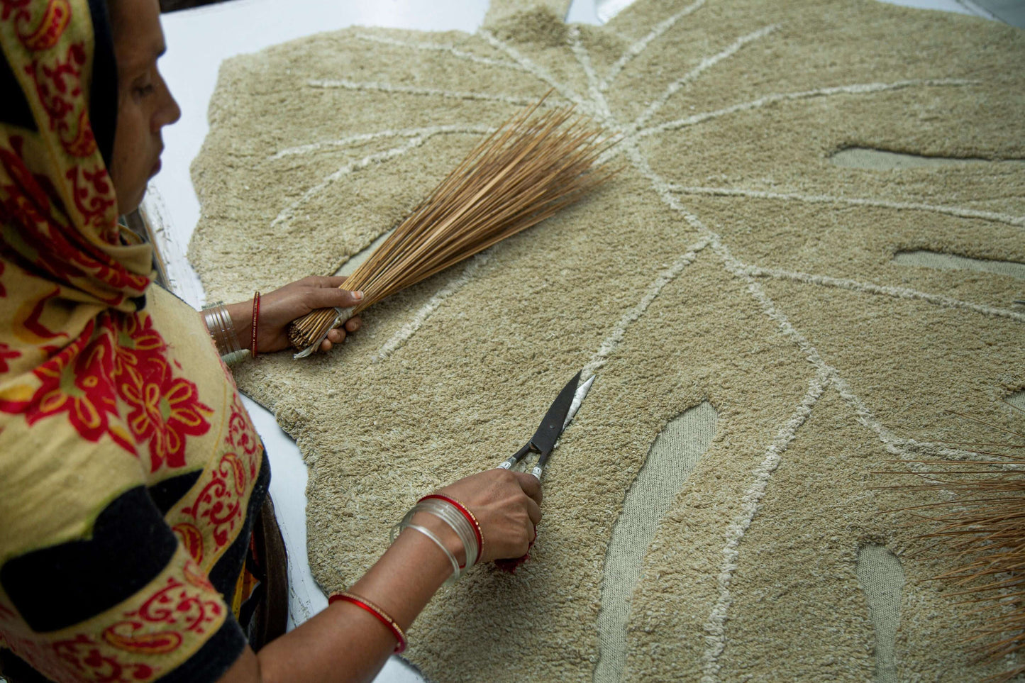- SWEEPING the rug with a soft or natural fiber broom or brush.