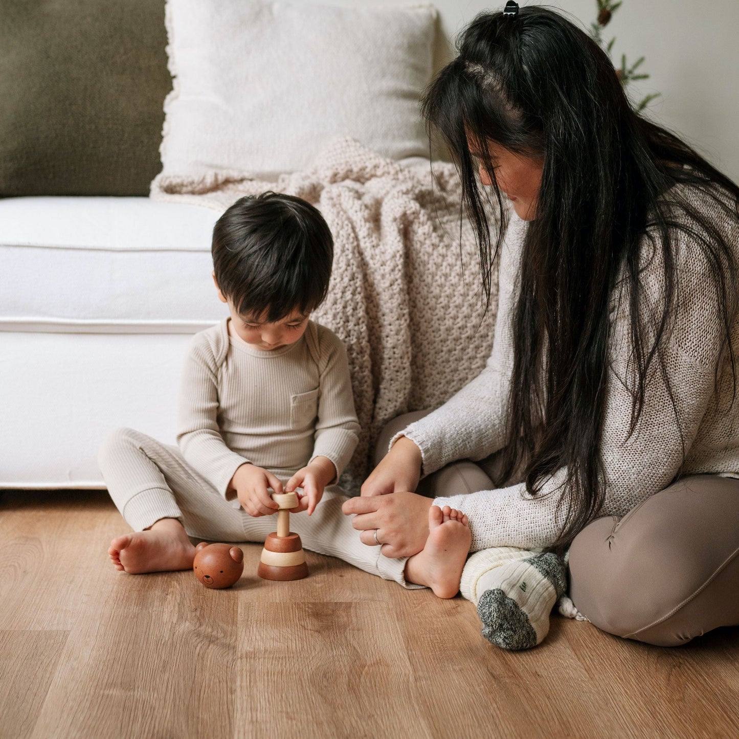 This way, that way, there is no wrong way for creative play! This sweet bear is a classic ring stacker, reimagined in signature Wee Gallery style with a beautiful natural finish. Stack like this and stack like that, the wood rings can be arranged in a variety of creative ways. Promote fine motor development in young children and begin STEM / STEAM building and learning exploration all with this beautifully designed wooden toy.
