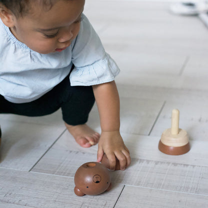 The Bear Wood Stacker is a classic toy that has been reimagined for modern kids, in signature Wee Gallery style. Consisting of four wooden pieces plus the base, the ring stacker can be arranged in different ways to create unique results. Our montessori inspired Wood Stackers are designed to help a child's hand-eye coordination, fine motor skills, spatial reasoning, concentration, and imaginative play, with the added bonus of looking adorable as nursery or playroom decor.