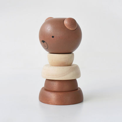 Bear Wood Stacker: Recommended for ages 18 months +. Measures 4.75 inches tall. Made of natural Rubberwood with a child-safe finish.